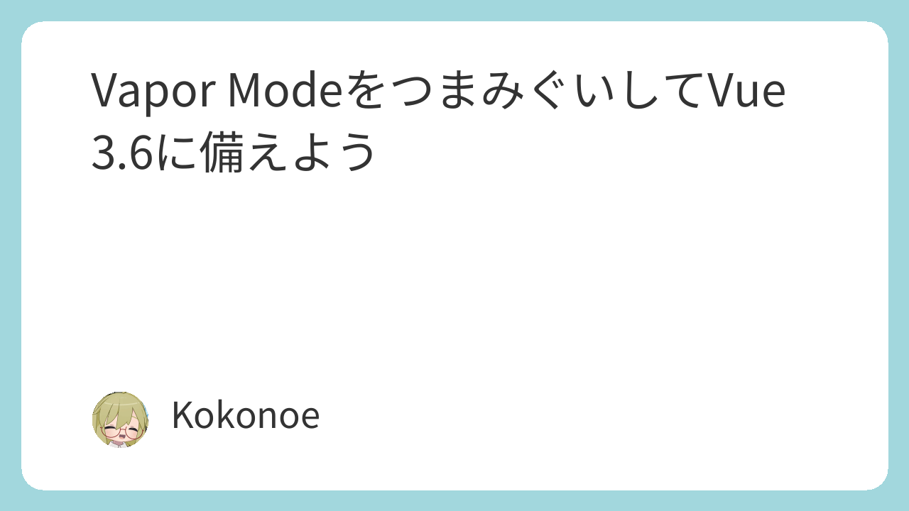 今回はVue 3.6の主要機能であるVapor Modeとalien-signalsについて紹介しました。Vapor Modeは昨年、Misskey開発者のしゅいろさんの記事で知ったのですが、3.6の記事を書こうとしたら正式に採用されており「ついに来たか……」という感じです。全体的なトレンドを見ても、メモリ削減・パフォーマンス向上のためのVDOM脱却の流れなのかなあとは思います。